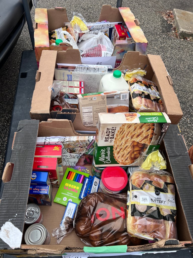 We have delivered the boxes of groceries, and because of you, we were able to provide meals for 17 families and 88 people only (with plenty of leftovers!) – This was a huge impact! Every family had their choice of Ham or Turkey, a dessert option and a potato option – and they all received: green beans/mushroom soup/crispy onions, corn, stuffing, gravy, sweet potatoes or russet potatoes, apple pie or pumpkin pie or brownies, gallon of milk, a lb of butter, a quart of vanilla ice cream, macaroni and cheese, dinner rolls, turkey oven cooking bags and even some holiday coloring books and festive table cloth! We tried to make this an “at home, personalized” box – to really make the holiday special. – YOU ARE THE REASON this was such a successful project and we cannot thank you all enough!